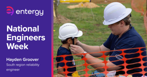 Hayden Groover is a reliability engineer for Entergy Mississippi’s South region. His previous roles with Entergy included working as a distribution field engineer in Lake Charles, Louisiana, and as an intern at the Attala Plant in Sallis, Mississippi.
