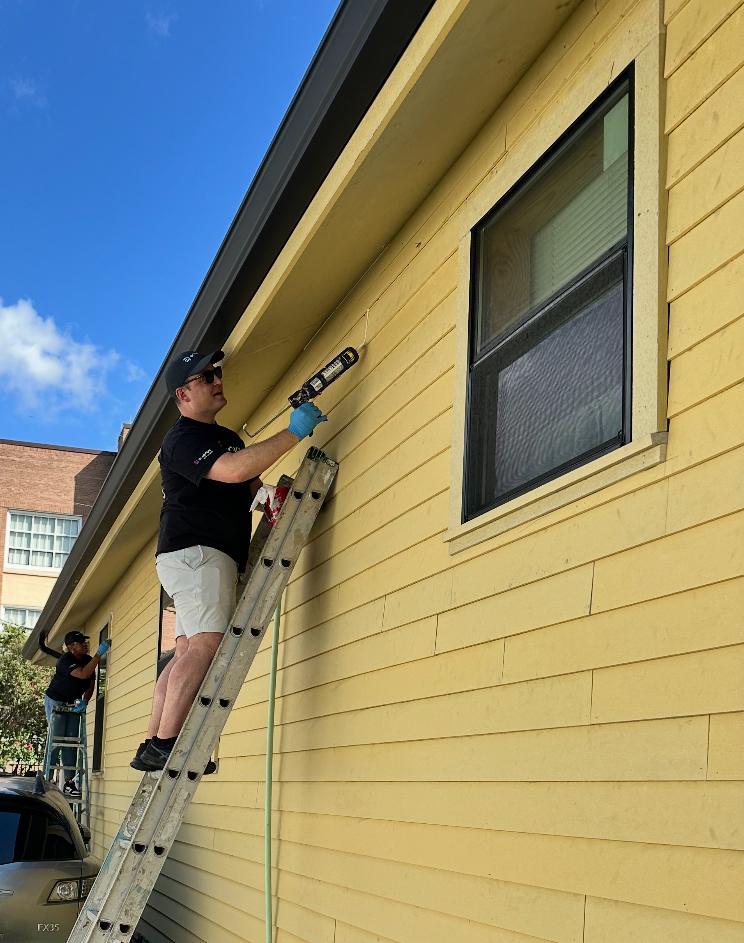 Volunteers helped weatherize the home by caulking windows and doors and installing Hardie board siding. These upgrades are designed to help reduce energy consumption and lower monthly electricity costs.
