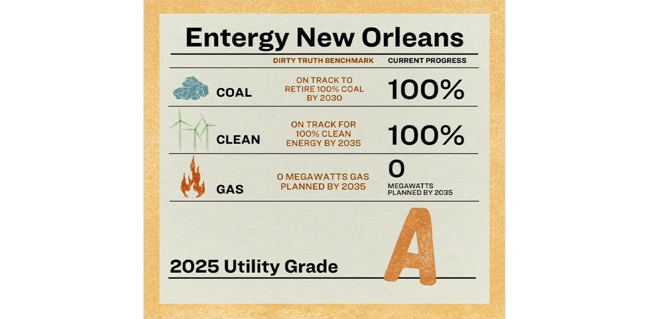 Entergy New Orleans has been recognized with an “A” grade by the Sierra Club for its ongoing efforts to transition to clean, sustainable energy. This distinction reflects the company’s commitment to retiring coal, avoiding new natural gas generation, and investing in renewable energy, even amid shifting federal support and rising electricity demand.
