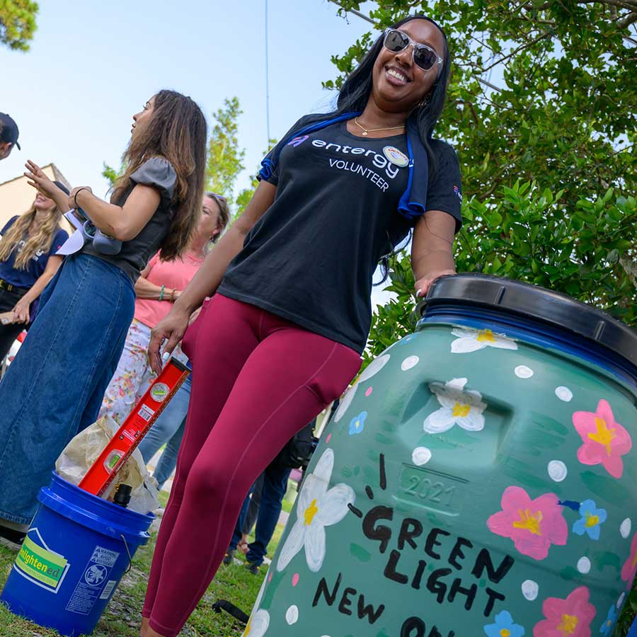Following Katrina and Rita, Entergy was there from the start, bringing hard-hit communities back from devastation. Thousands of our team members worked despite their own loss, many for months at a time, until the last lights were on after the back-to-back storms. Caring for our customers — giving back and empowering them — became the heart of our mission around restoration efforts.