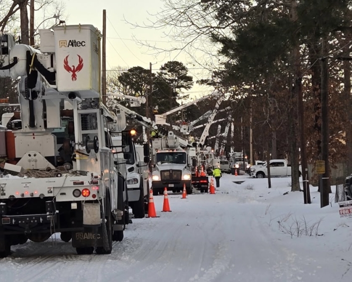 Restoration is well underway as Entergy crews continue making progress assessing damage and restoring power to customers left without electricity after severe winter weather — including snow, ice and freezing rain — passed through our service area over the weekend.